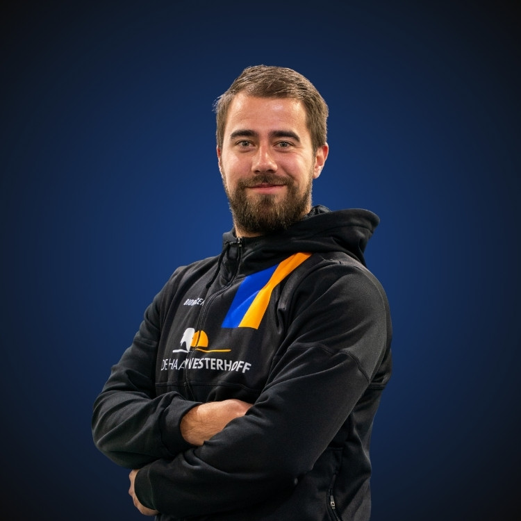 Ik ben sinds 2019 betrokken bij de ploeg en naast mijn werk voor het team ben ik fysiotherapeut in een verpleeghuis. Daarnaast werk ik in de tuin als hovenier en werk ik in een fabriek. Ook geef ik schaatstraining en skeelertraining. Verder vind ik het leuk om zelf te sporten als ik daar aan toe kom en om met vrienden af te spreken.